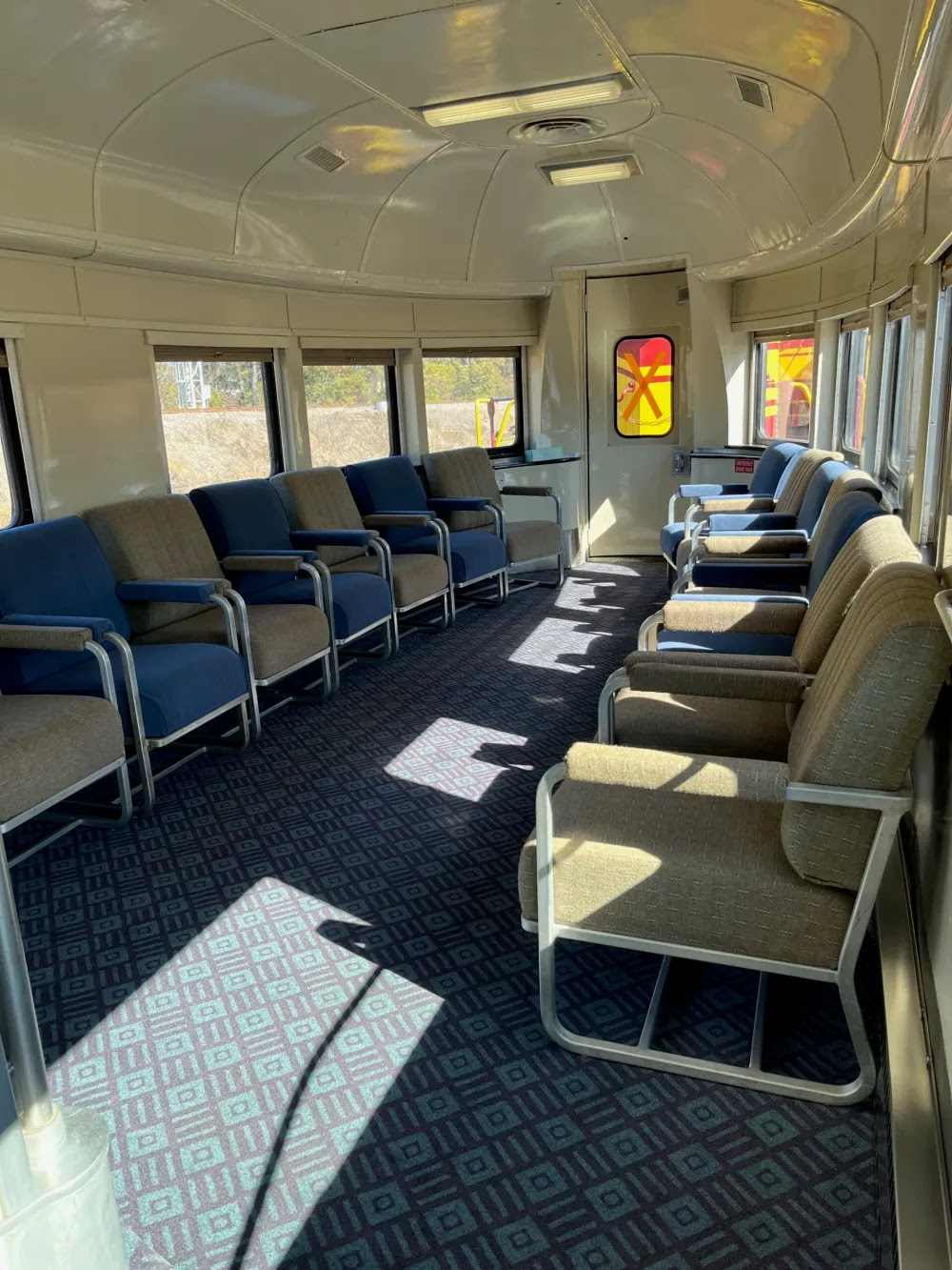 Crown Class seating is located on the ground level of the dome car.