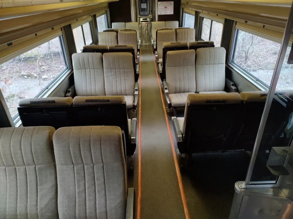 Crown Class seating is located on the ground level of the dome car.